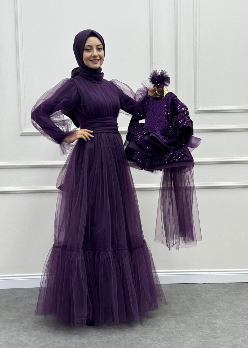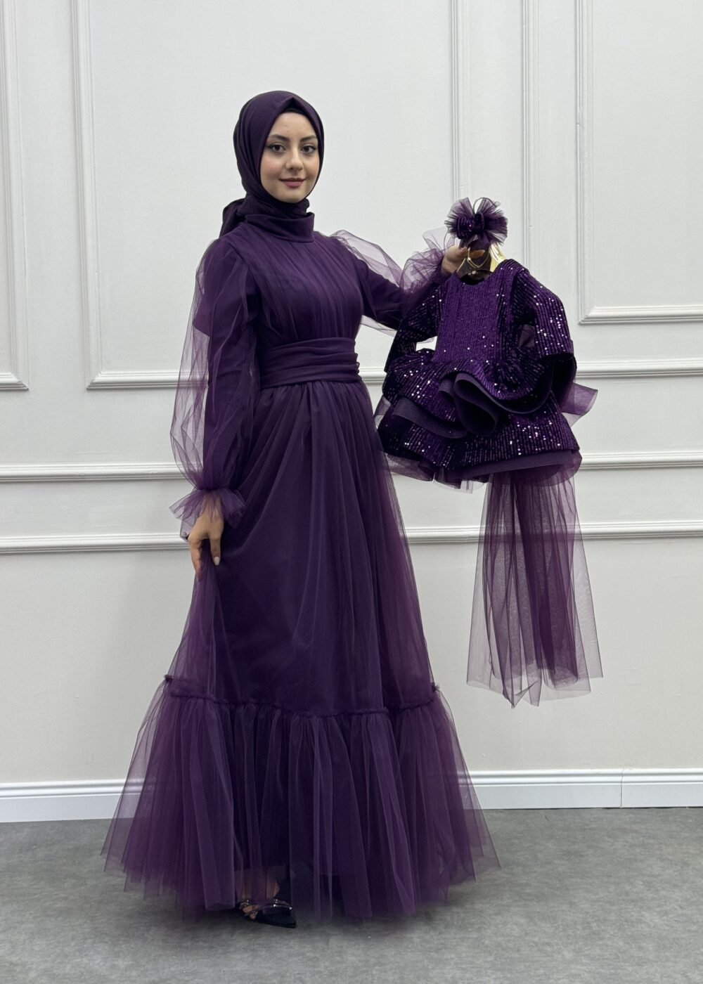 ₺3.650,00Tüllü Anne Kız Abiye Mor