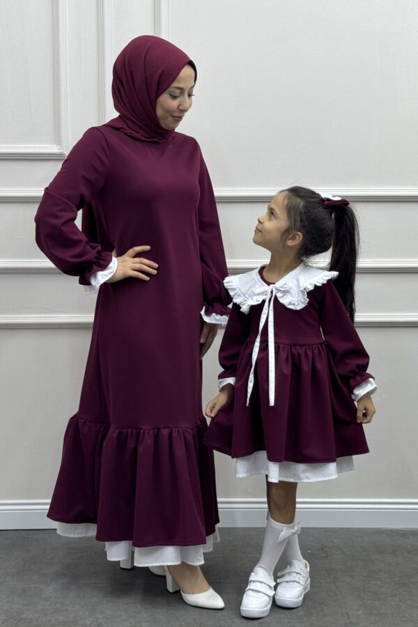 ₺1.900,00İki Renkli Anne Kız Kombin Bordo