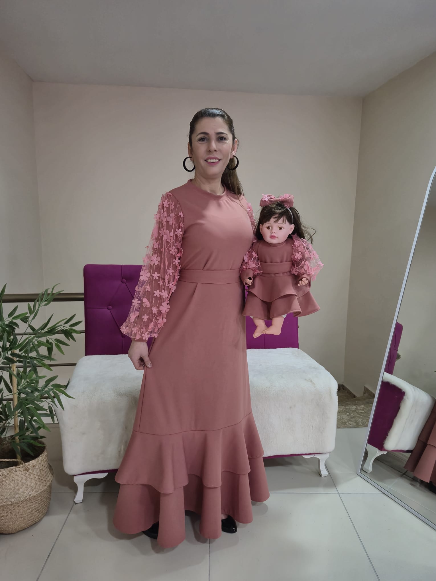Romantik Şıklık: Gül Kurusu 3D Çiçek Nakışlı Anne Kız Abiye Kombini