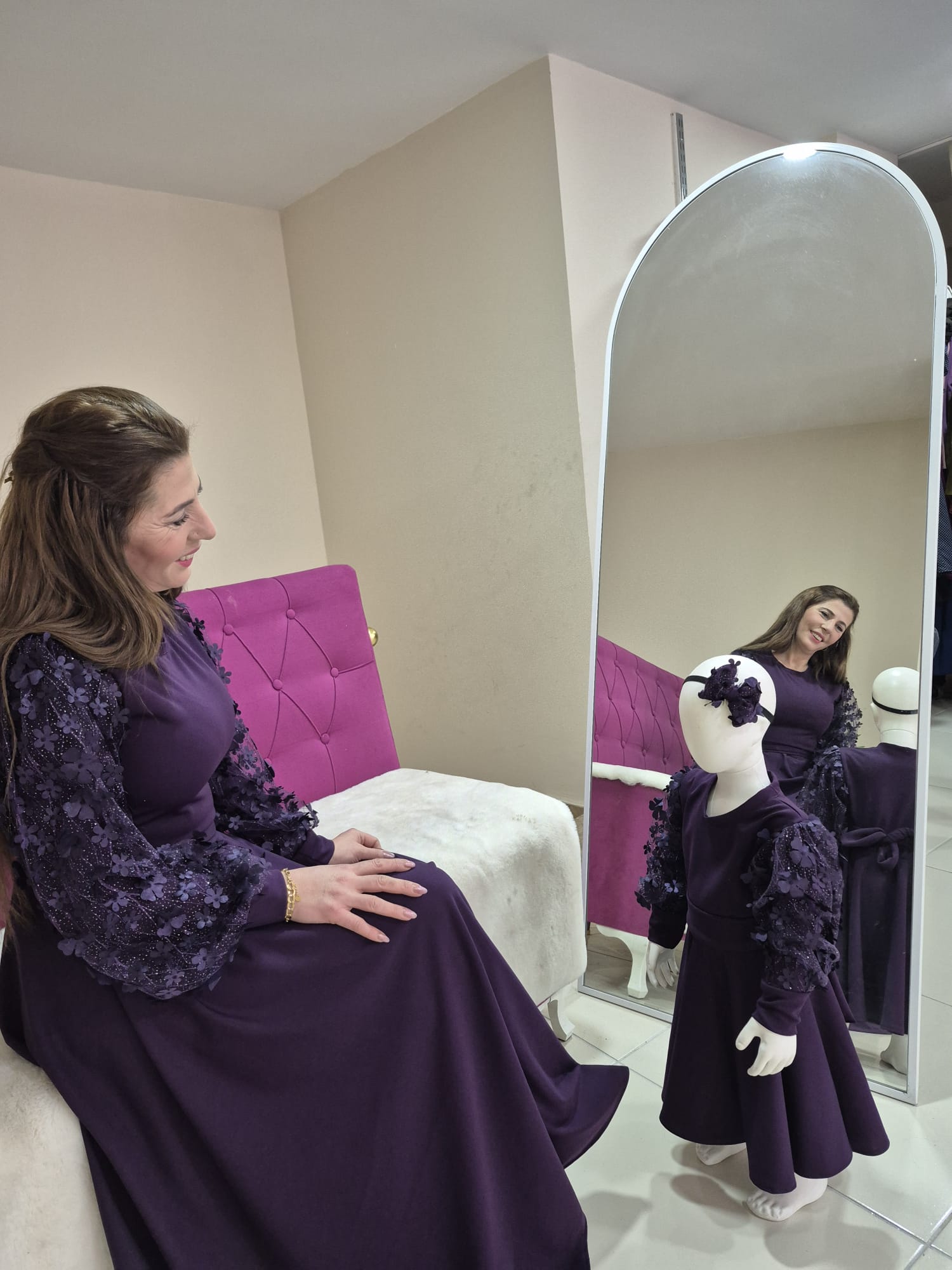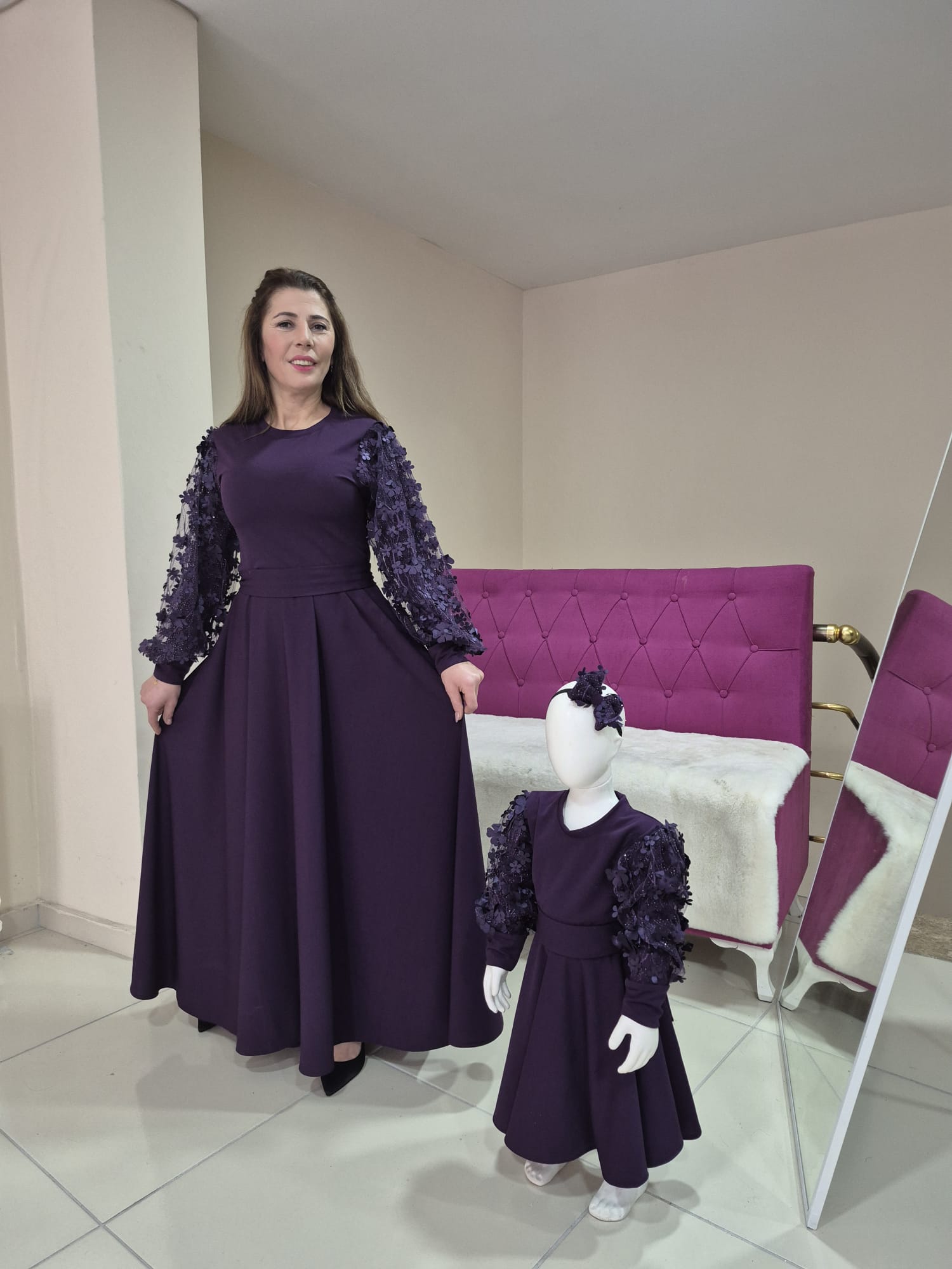 En özel davetlerde, düğünlerde ve kutlamalarda asaletinizle göz kamaştırın. Modern kesimi, derin mor tonu ve el işçiliği zarafetindeki detaylarıyla bu kombin, hem sizin hem de minik prensesinizin şıklığını bir üst seviyeye taşıyor.