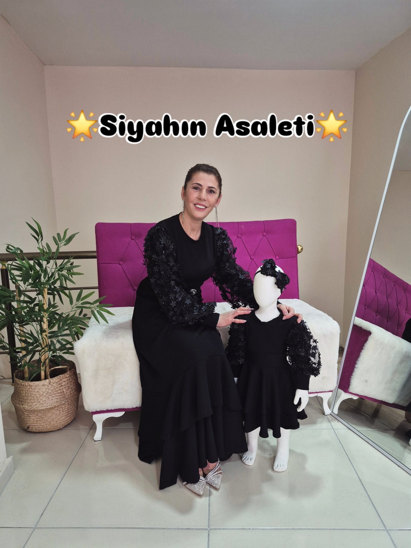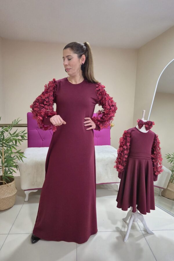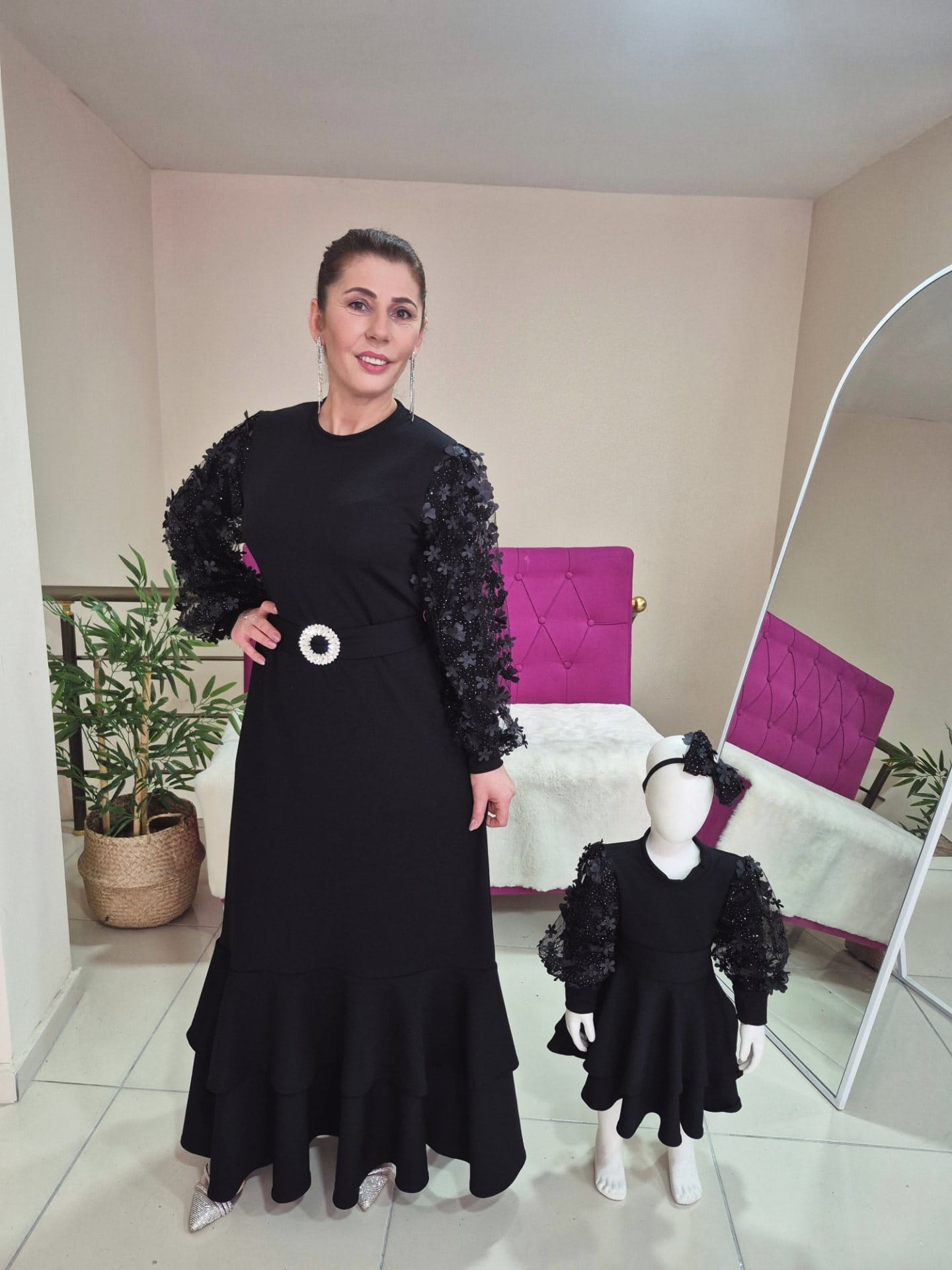 Masalsı Şıklık: 3D Çiçekli Krep Anne Kız Abiye Kombini