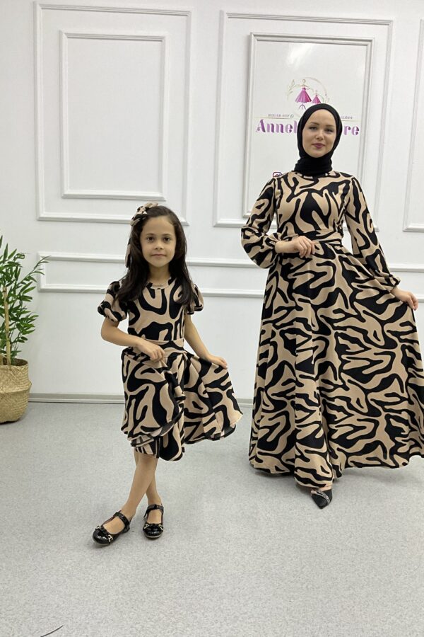 Siyahın zamansız şıklığını yansıtan bu kombin, tül detayları ve modern kesimiyle her yaş grubuna hitap ediyor. Hem anne hem de kızları için tasarlanan bu özel takım, özel günlerinizde uyumlu ve göz alıcı bir stil oluşturmanıza yardımcı olacak.