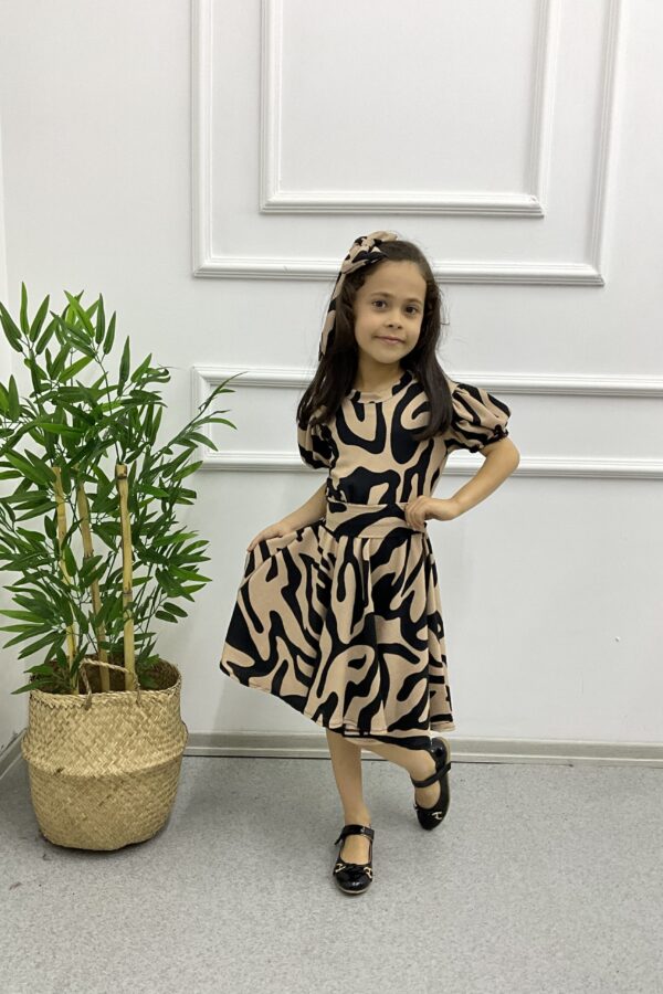 Leopar Anne Kız Kombin Elbise Siyah Üzeri Kahve
