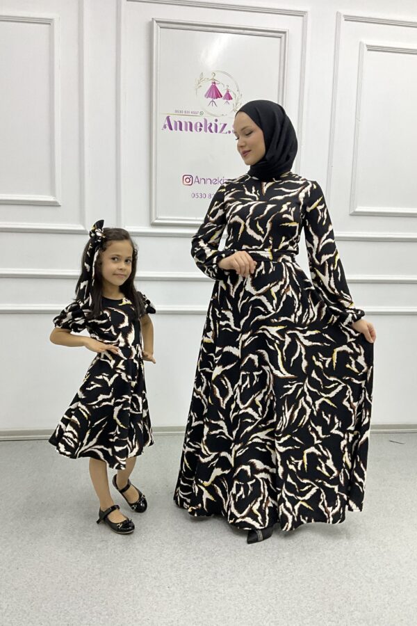 ₺2.300,00Desenli Anne Kız Kombin Elbise Siyah