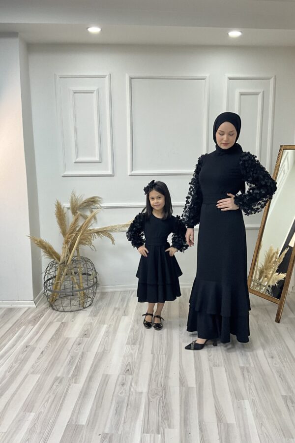 ₺2.200,00Kolu Çiçekli Anne Kız Kombin Siyah